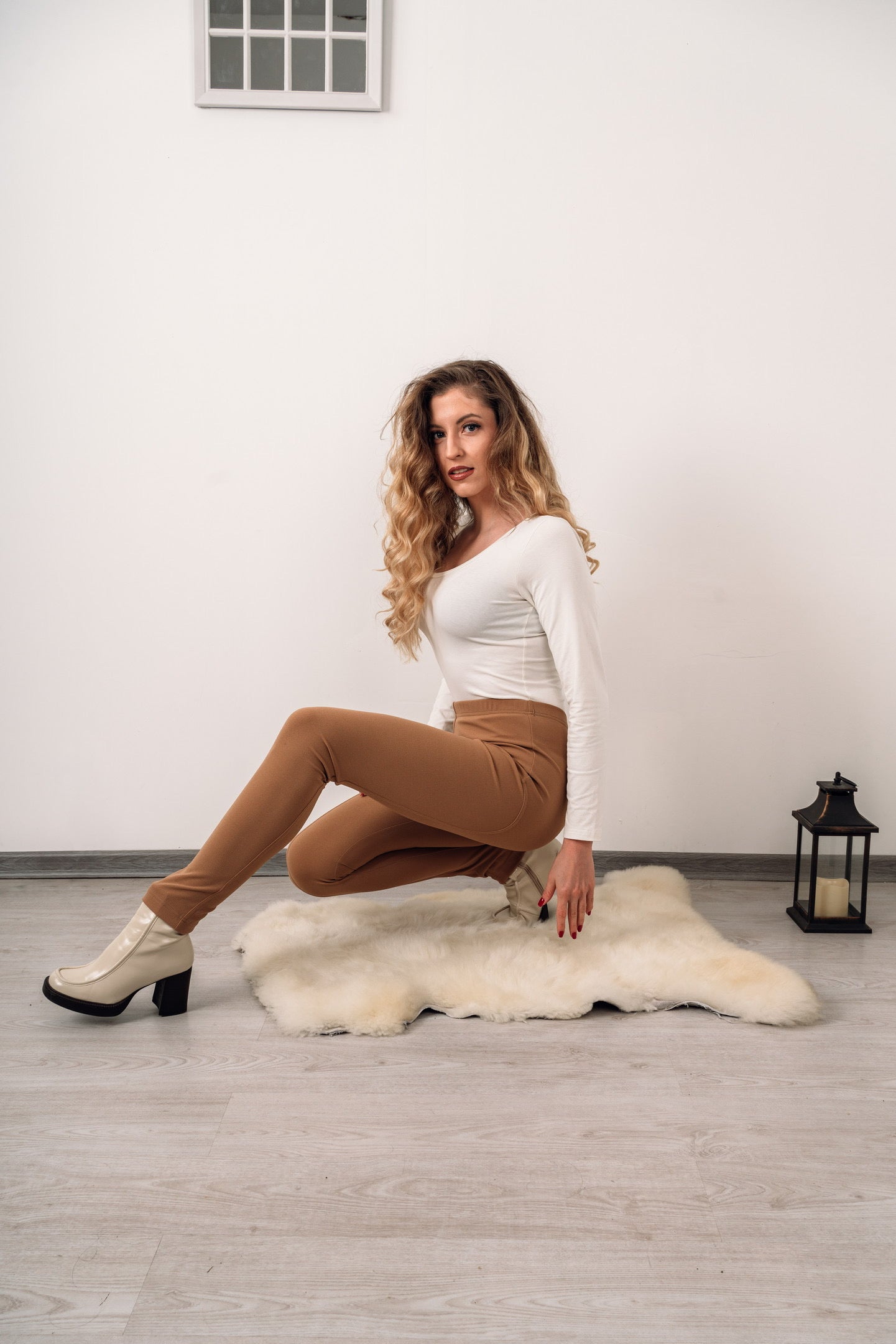 Die Leggings/Hosen-Edition besteht aus hochwertigem Stretch-Crêpe-/Viskose-Material und definiert die Beine wunderbar. Das einzigartige geschwungene Design ermöglicht, dass sich die Leggings gut um den Körper schmiegen und sich dehnen, um die gewünschte Form zu erreichen